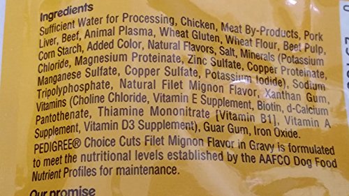 Pedigree Choice Cuts in Gravy Filet Mignon Flavor in Gravy 4- Pouches NET WT 3.5 OZ (100g) EACH