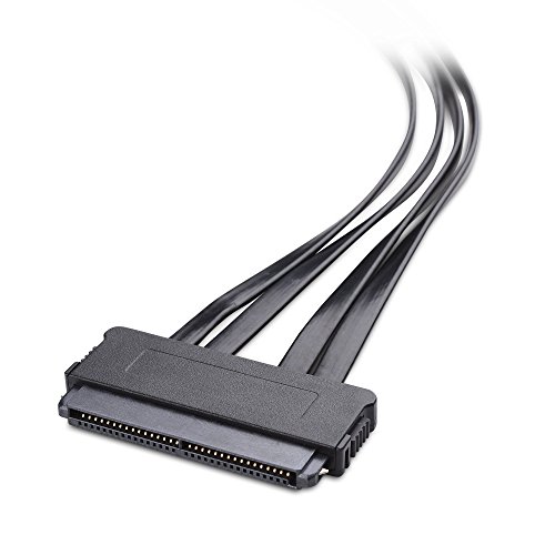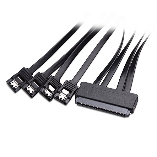 MULTILANE BREAKOUT CABLE with a flat cable design and a 32pin SAS SFF 8484 target connector fans out into 4 separate 7 pin latching SATA connectors; Sturdy molded connectors provide a secure connection; P1 to P4 markers provide easy ID after installation; Low profile SATA connectors have easy-grip treads with stainless steel latches to prevent accidental disconnection