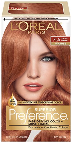 L'Oréal Paris Superior Preference Permanent Hair Color, 7LA Lightest Auburn, 3 Count