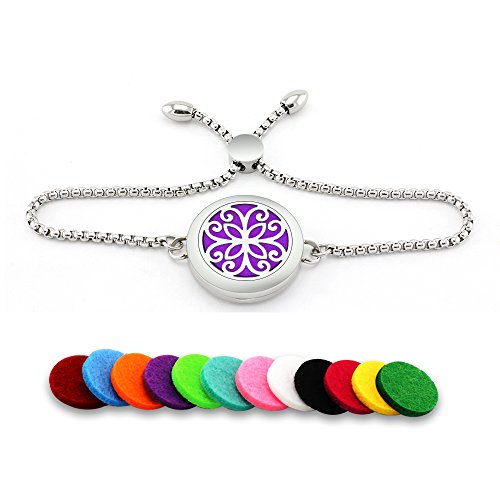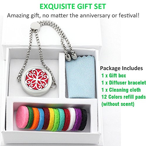 - A convenient and simple aromatherapy essential oil jewelry for you, friendly size and nice look. It is a great gift for yourself, your family or your friends. Packing includes: 1 gift box+1 diffuser bracelet+12 different felt pads. Our store provides 17mm replacement felt pads.