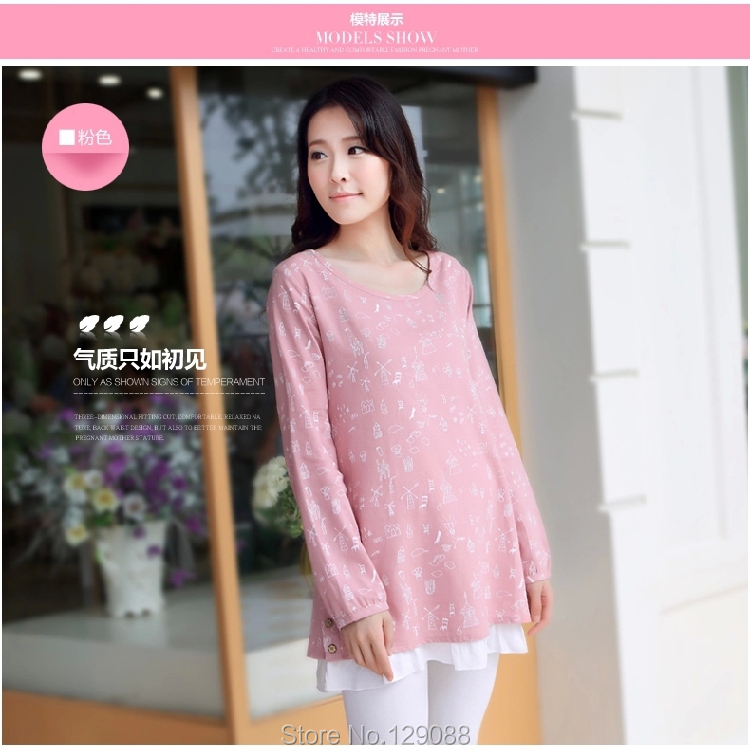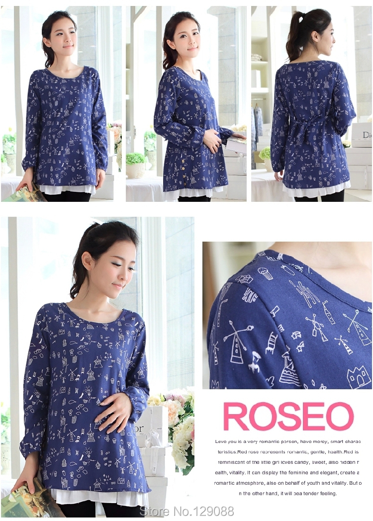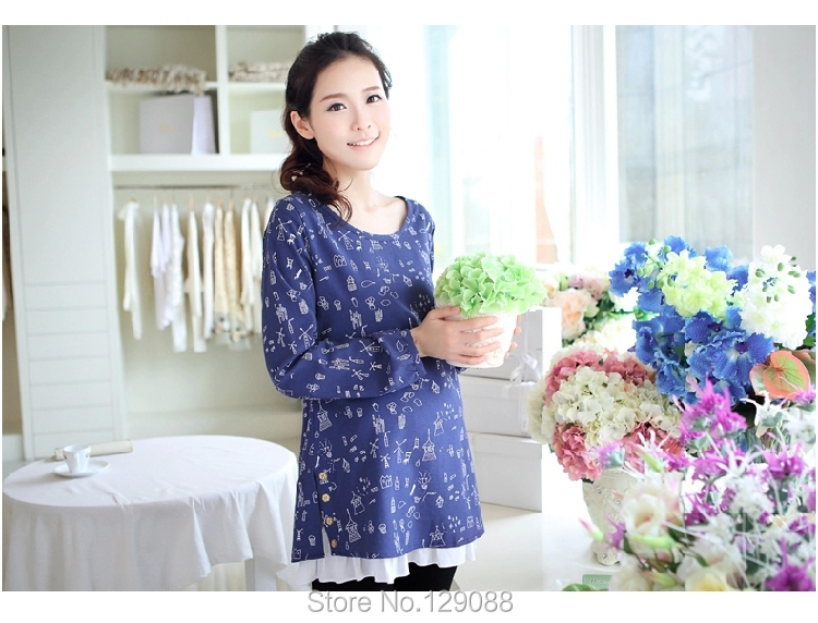 Product Name: Dress Maternity Plus Size Print V-neck LooseLong-sleeve Vestido Para Gravida 2015 Clothes For Pregnant Women False Two-piece
