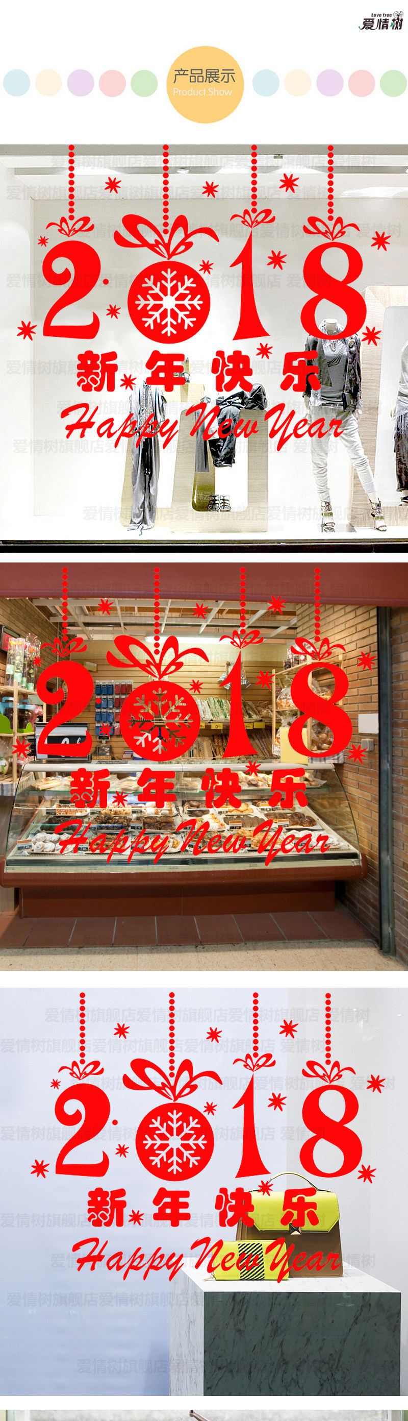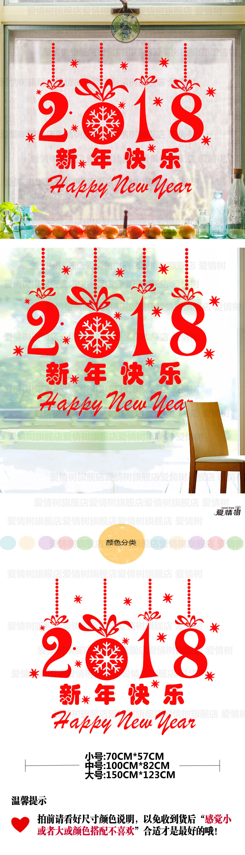 元旦新年快乐贴纸店铺店面橱窗玻璃装饰门贴狗年喜庆贴画窗花