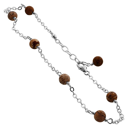 -. Title : Gem Avenue Sterling Silver Simulated Jasper Adjustable Anklet