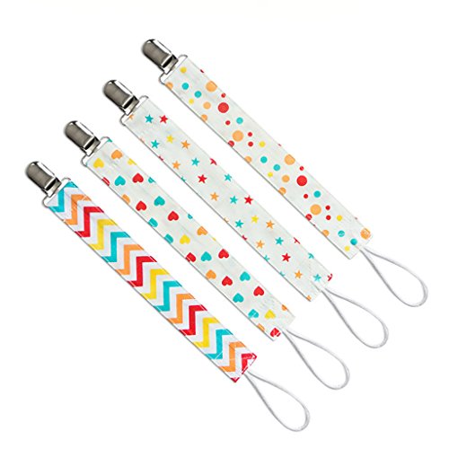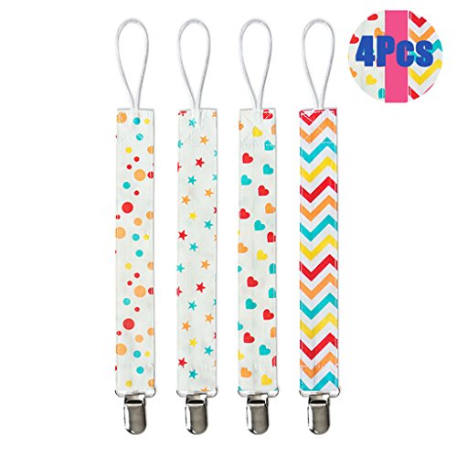 Pacifier Clip for Girls and Boys-4 Pack- Great Universal Pacifier Teething Holder Set Teething Ring Toys-DoGeek