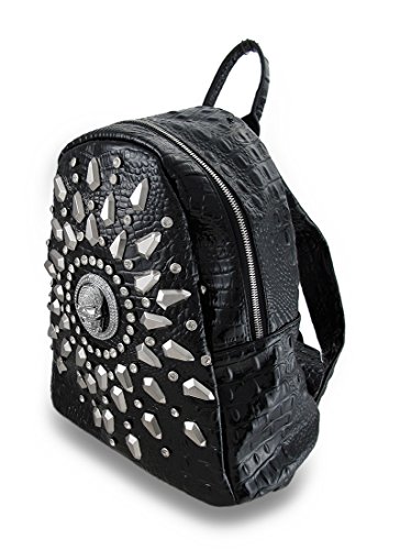-. Title : Vinyl Womens Shoulder Handbags Glossy Vinyl Mock Crock Rhinestone Skull Studded Backpack Purse Black Model # 437481-910
