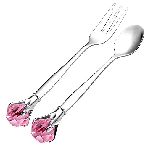 Yerwal Stainless Steel Flatware Set Two Piece Tableware Dinner Set,1 Spoon and 1 Fork (Pink)