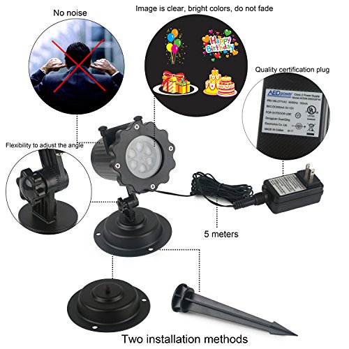 【Convenient to use】 Come with 5m long power cable and US plug, timing remote control(6-hour on, 18-hour off cycle, or 2hours/4hours/6hours automatic shutdown function), 16 pcs replaceable lens can accent you home and easily decorate for every season.