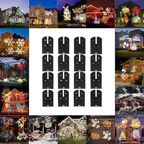 【16 Replaceable Patterns】 Made of high quality fastness pattern ,No color fading after a long time use. 16 Fastness Pattern Lens meet the needs of all the occasions, such as Christmas, Halloween, Birthday, Wedding, bar, Home Decor, Party,and so on.