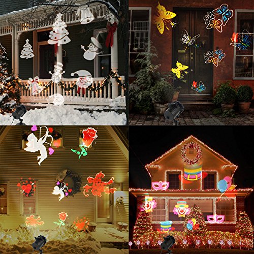 Christmas Party LED Projector Lights 16 Fastness Pattern Motion Laser Projector with Remote Control for Christmas, Party, Halloween, Wedding, Valentine's Day Waterproof Multilcolor