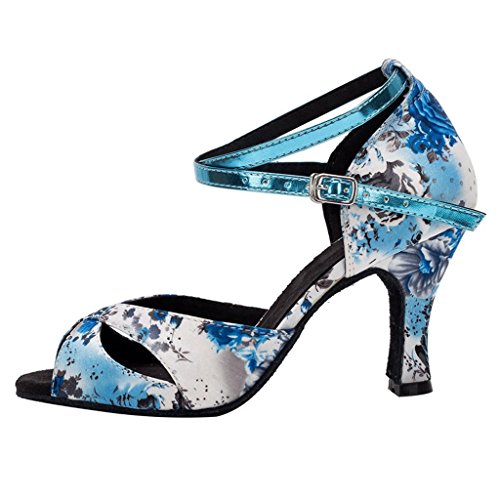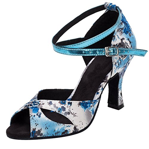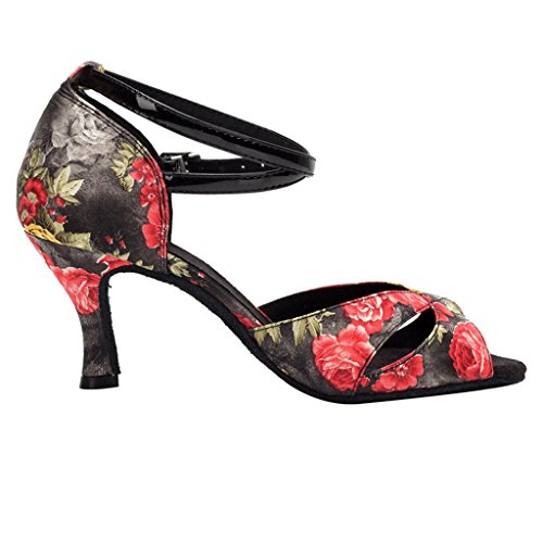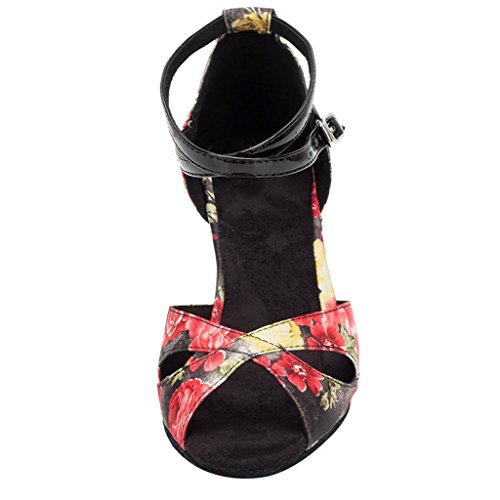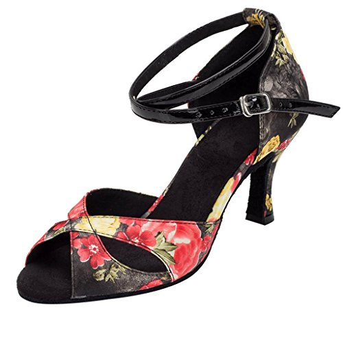 (HXYOO)/Women's/Athletic Outdoor/DIRECT FROM USA/HXYOO Indoor Dance Shoes Women For Ballroom Latin Salsa Floral Satin 2.5" 3" Heel T12