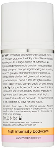 Skin tight toning serum, 3.4 ounce. This is facial quality skincare for crepey skin and you are going love how this makes your skin look. Feel free to get inventive about where you apply Skin Tight Toner. This retexturising serum is multi-purpose. Boobs, tummy, backs of arms, tops of legs and droopy knees can all benefit from a little 'lift, tighten and tone'. Reality check-improving the texture of your skin is a commitment. Anything that promises instant results will not work, it will take 6-8 weeks to obtain maximum results. Once you achieve your desired result, you may want to use Skin tight toner serum once a day to maintain it. Top tip if using with Mama Mio Goodbye stretch marks, shrink to fit hip and thigh cellulite cream or get waisted body shaper; Apply Skin Tight Toner first. Amuse yourself for 45 seconds, then apply the other product.Feature