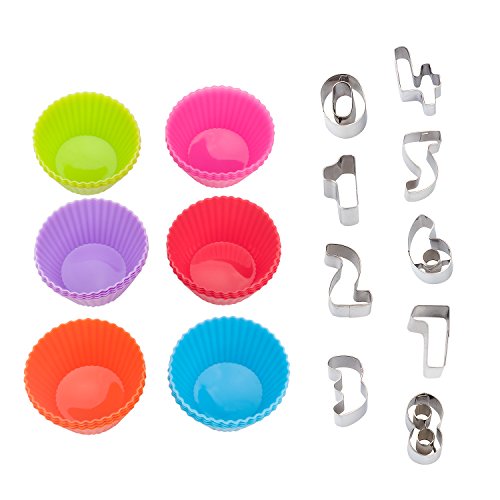 Silicone Cupcake Liners - Silicone Baking Muffin Cups / 24 Pack Baking Cups- Nonstick Muffin Molds - Reusable Muffin Cupcake - Cupcake Holders Gift Set for Baking + 9 Metal Number Cookie Cutter
