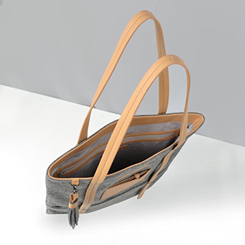 -. Feature : Deep main compartment with magnet closure, 2 exterior slip pockets, back slip pocket with magnet closure, interior slip pocket and phone holder Removable tassel, key fob, wristlet wallet, credit card holder, / Oversized tote with vegan leather strap, combination of genuine leather and vegan leather for design points / 15" laptop compatible / Fabric Handbags / Handbags