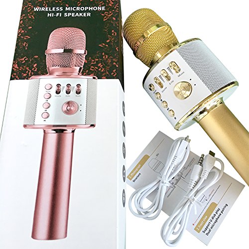 -. Title : Wireless Bluetooth Karaoke Microphone - For Valentine's Day & Birthday Day Party Portable Hand Speaker Stereo Player KTV Karaoke Mic for iPhone/Android/iPad/Sony/TV and All Smartphone(Gold)
