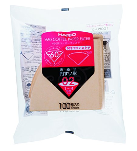 -. Brand : Hario -. Color : Natural -. EAN : 4977642726659 -. Feature : Capacity is one to three cups / Pack of 100 filters / The form that is easy to open / Made in Japan / Designed to fit the cone shaped 02 dripper -. Label : Hario -. Manufacturer : Hario -. Model : VCF-02-100M-JW -. ProductGroup : Kitchen -. ProductTypeName : KITCHEN -. Publisher : Hario -. Studio : Hario -. Title : NEW Hario 02 100 Count Coffee Paper Filter, Natural