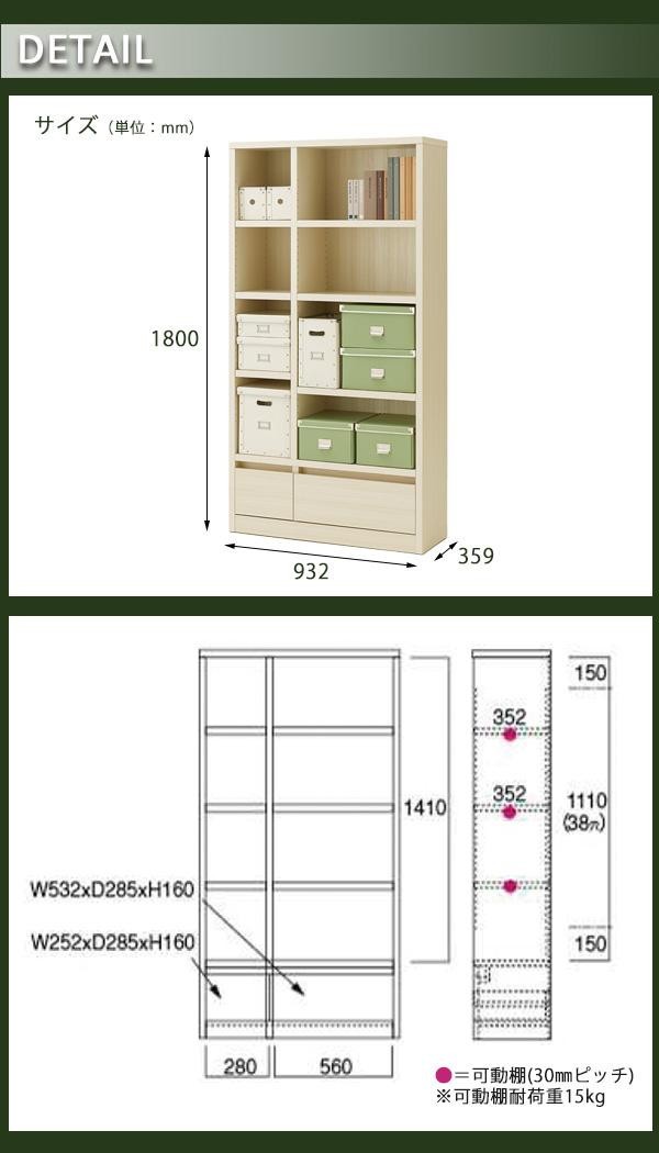 fk094igrjs収納箱(ボックス)をきれいに収納するシェルフです。 製造国:日本 素材・材質:プリント化粧板 商品サイズ:W932×D359×H1800mm 仕様:完成品可動棚板:大3枚、小3枚可動棚板耐荷重:15kg(1枚あたり) 付属品:固定金具、棚ダボ、説明書※お届け地域により、別途運賃がかかる場合やお届けできない場合がございますので、お問い合わせ下さい。