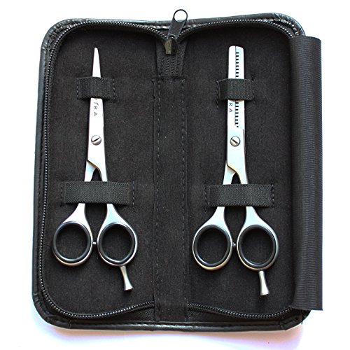This stylish and sleek looking set comes in a free zippered cushioned black leather case with elastic bands to keep the hair scissors in place and prevent accidents.