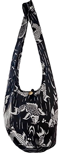 These Sling bag, hobo, crossbody or shoulder bags are very generous size, large enough for an A4 folder, 15 Inch laptop, ideal to fit some convenience shopping on the way back home from work. Made from 100% Cotton these bag are natural eco friendly and biodegradable for sustainable living. This also makes them very lightweight and are easily folded into another bag to be used as a back up. These bags come in a variety of high quality prints with something for everyone, male or female, they make a fantastic accessories to your wardrobe. All are in a Stylish and functional cut that can be worn as either a sling type cross body bag or a hobo shoulder bags. They zip shut across the middle and have an extra fastening in the form of a wooden button that conceals the main zip. There is a small zip pocket inside the main zip which would be great for a small phone, wallet, keys or other items. They have a large WIDE strap (11cm approximately across) ideal for comfort especially when carry weight. There is also a lot of length in the strap (extending 60m approximately from top of bag to strap height) so can be worn by taller people. Smaller people can easily tie a knot in the strap to shorten to the desired length or wear as a crossbody bag. Approximate Dimensions are; 96cm in length from the top of strap to the bottom of bag. 43cm width from side across the middle of main pocket/body of bag with the height of the pocket being 43cm The width/depth/diameter across the bottom of is approximately 32cm. Strap height is 60cm and strap width 11cm. The dimensions of the bag make it incredibly functional so can easily hold and support an A4 folder, 15 inch laptop, motorcycle helmet, daily convenience shop amongst many other things. Great for everyday fashionable wear, carry around as an extra bag, a travel day pack or out and about town, festivals or walks.Feature