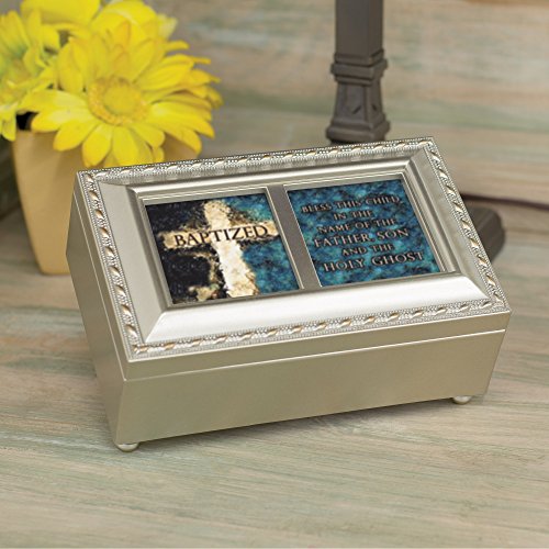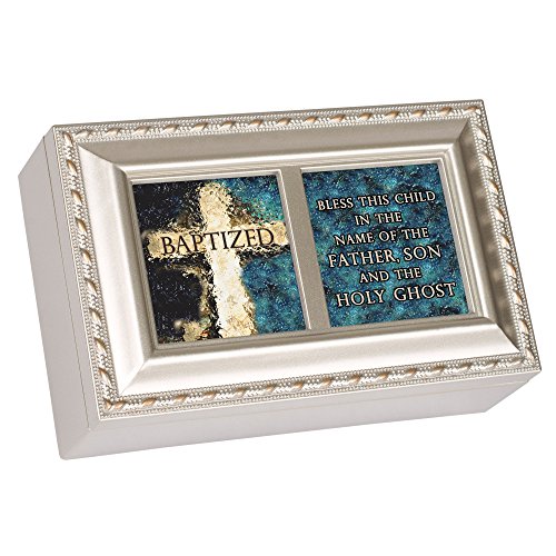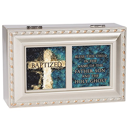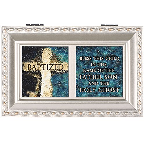 Baptized Bless This Child Father Champagne Silvertone Petite Keepsake Music Box Plays Jesus Loves Me