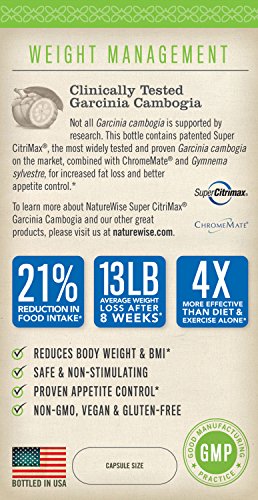 SAFE & NATURAL: NatureWise Super Citrimax Garcinia Cambogia is 100% natural, non-stimulating and non-addictive. No chemicals, artificial additives or fillers. Just clean, plant-based ingredients that are friendly to your body and safe to take long-term.
