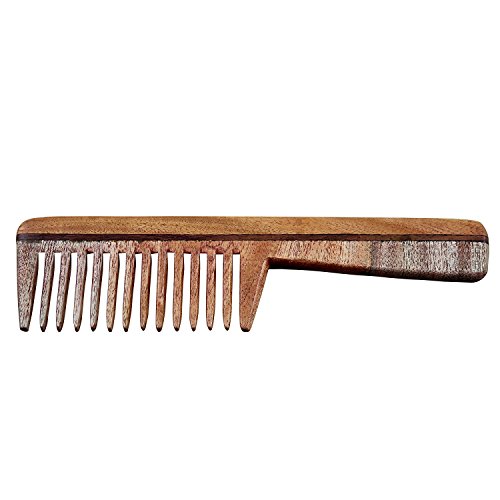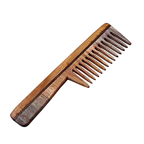 Handmade Natural Neem Wood Wide Tooth Comb with Handle for Hair Care - Anti Dandruff, Non-Static and Eco-friendly