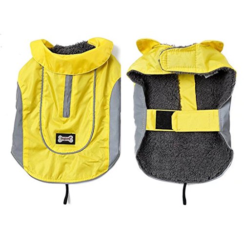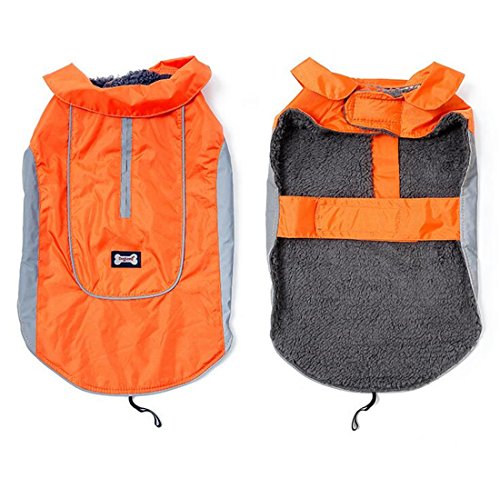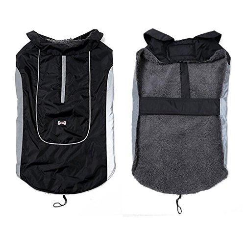 -. Feature : Material:Inner fabric:warm soft fleece ,Upper fabric:water proof. / Professional quality:Waterproof polyester fabric with safety reflecting brim,double zipper for collar and harness ring. / Inner layer plush,comfortable soft ,just like second layers of dogs hair ,keep them warm during all winter . / Perfact choise for small,medium ,large dogs to walk or play outdoor,or travel and skiing. / The same weight dogs differ in breeds may wear different sizes of clothes,so we need to combine the dog's specific size and
