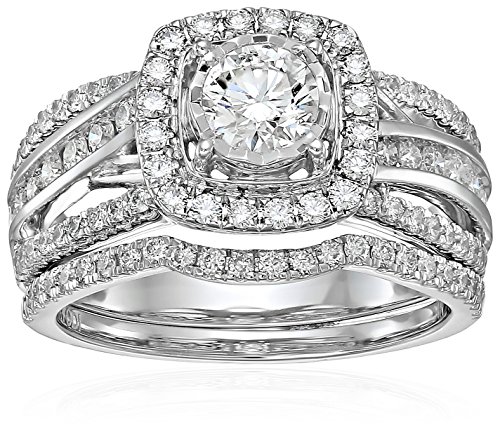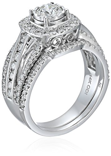 -. Title : 14k White Gold Diamond Halo Bridal Wedding Ring Set (1 3/8cttw, I Color, I2 Clarity)