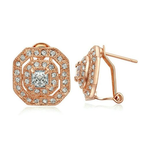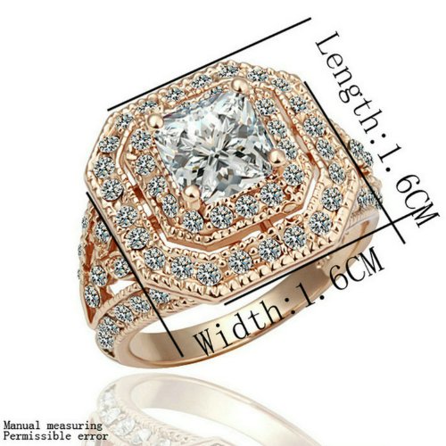 - Feature : What about the valentine? This set will be a good gift. Shipped out in an exquisite jewelry gift box which can be used as a gift directly. Need no other packing. / The set consists a ring, a necklace and a pair of stud earrings. Vintage style. Shiny square cubic zirconia in the center with two circles of clear Austrian crystals around it sparkling beautifully. The set is 18k rose gold plated. / It's a perfect accessory to your outfit or as an appropriate gift used in wedding and engagement party or other occasions. / The chain is about 15.7'' long. The square part size is about 0.6''*0.6''. / Delivery time is about 3-7 days by Amazon fulfillment Center.