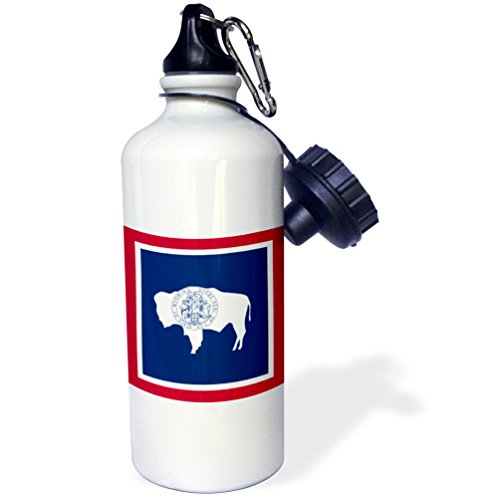 3dRose wb_159831_1 "Flag of Wyoming WY-US American United State of America USA. Red White Navy blue bison seal stamp" Sports Water Bottle, 21 oz, White