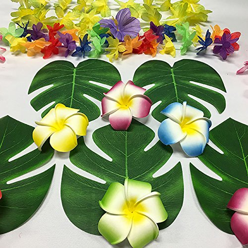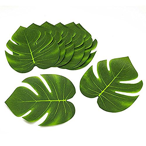 Tytroy Coated Fabric Artificial Tropical Green Plant Leaves Hawaiian Luau Party Decoration (Set of 12 leaves)