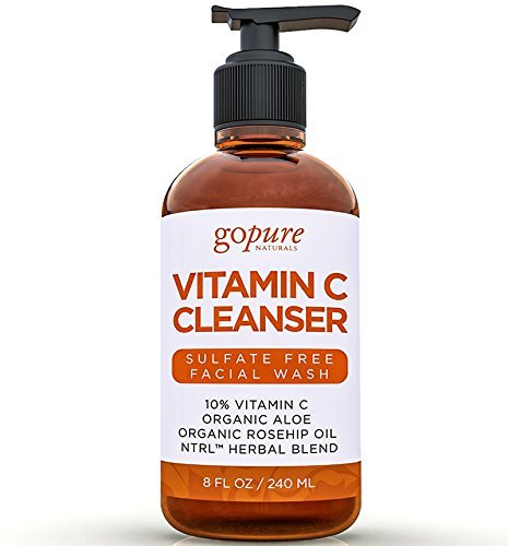 -. Feature : Natural & Gentle Facial Cleanser - Sulfate Free - LARGE 8oz - goPure Natural Facial Cleanser is made with Organic Ingredients and 10% Vitamin C for a gentle yet deep cleansing effect great for all skin types. / Experience softer, more radiant and younger looking skin with reduced pores, a deeply cleansed skin and a reduced appearance of age and sun spots or blemishes. / Made with NTRL ProP.R.Ietary Herbal Complex - Deeply Nourishing Herbal and Antioxidant Ingredients to infuse you skin with what it needs to be clean of impurities and pore-clogging toxins - Made with 10% Vitamin C so your skin gets the antioxidant protection it needs, Organic Aloe Vera to leave skin hydrated and not over-dry, Organic Rosehip Oil so that your skin is nourished with key nutrients and omega-3's. / No harmful chemicals or sulfates like other face washes - We only use the purest natural ingredients your skin deserves / Made in the USA in an FDA registered high-standards facility using only the finest natural ingredients.