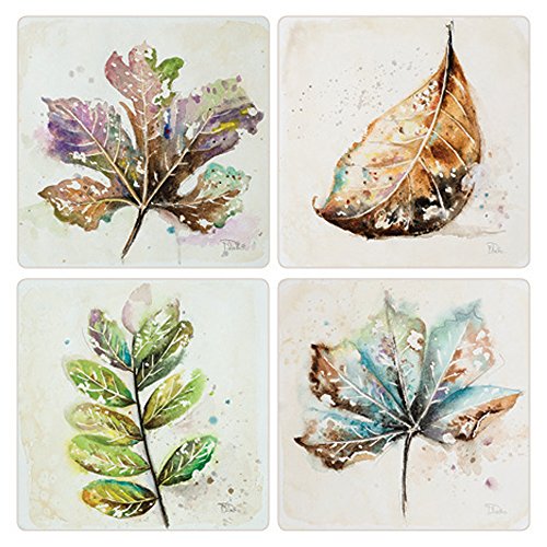 CoasterStone Global Leaves Absorbent Coasters (Set of 4), 4-1/4", Multicolor