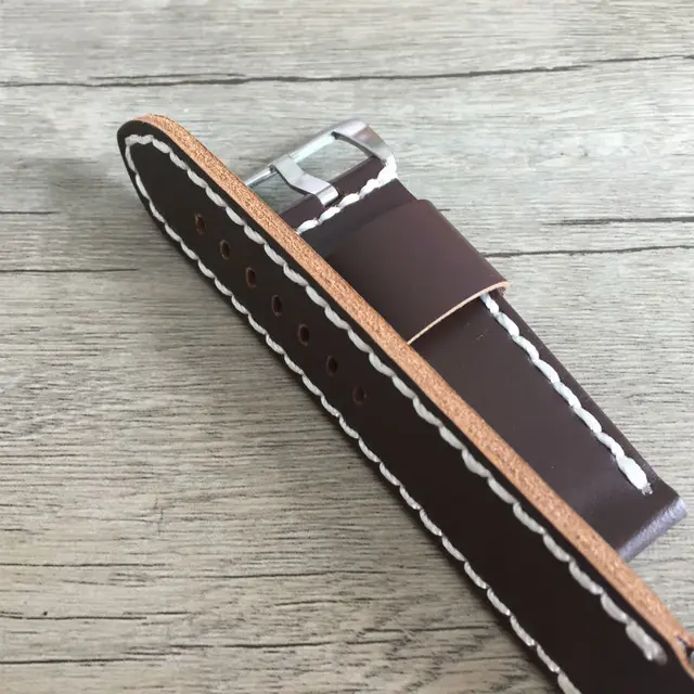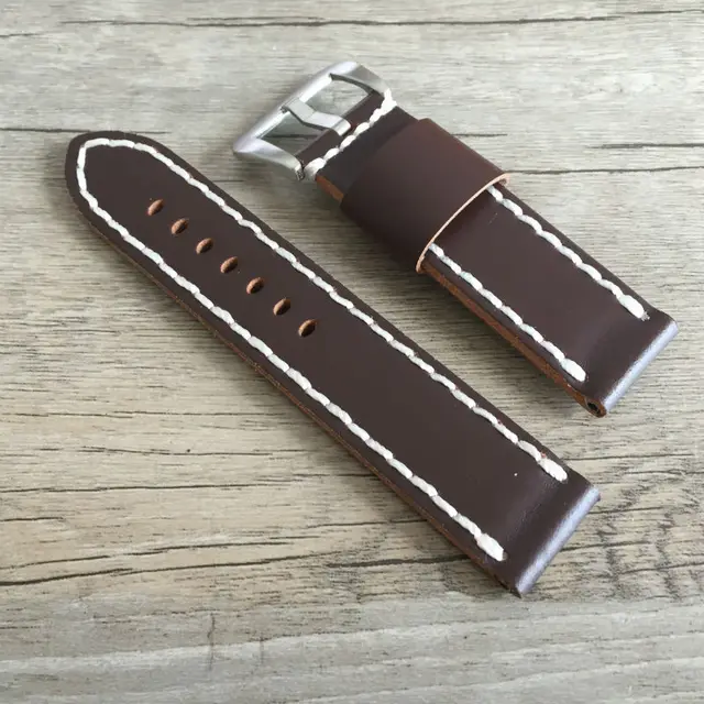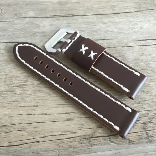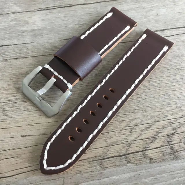 | [해외] 고급 시계 스트랩 24 미리메터 이탈리아어 송아지 수제 빈티지 정품 가죽 두꺼운 라인 시계 밴드 스트랩 손목 스트랩 PAM |