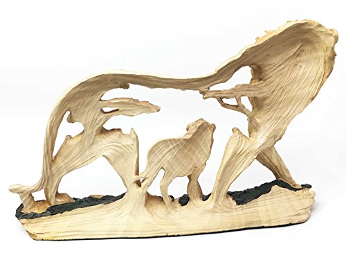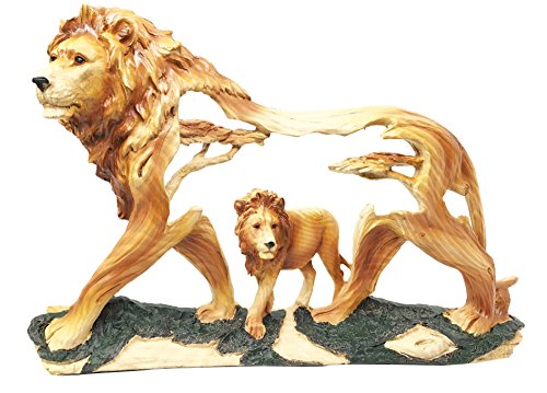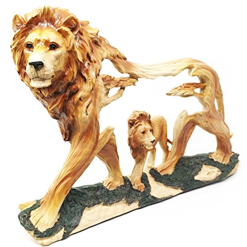 -. Title : Large Majestic African Savannah P.R.Ide Lion Scene Figurine Sculpture Rustic Faux Wood Collectible