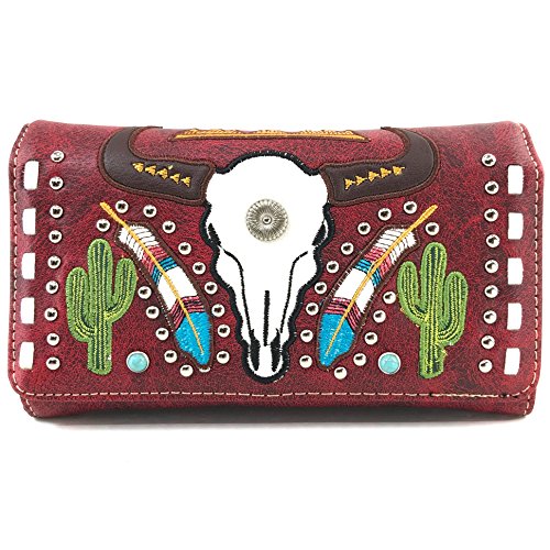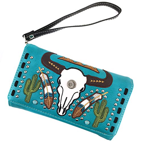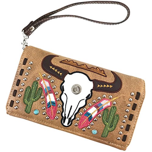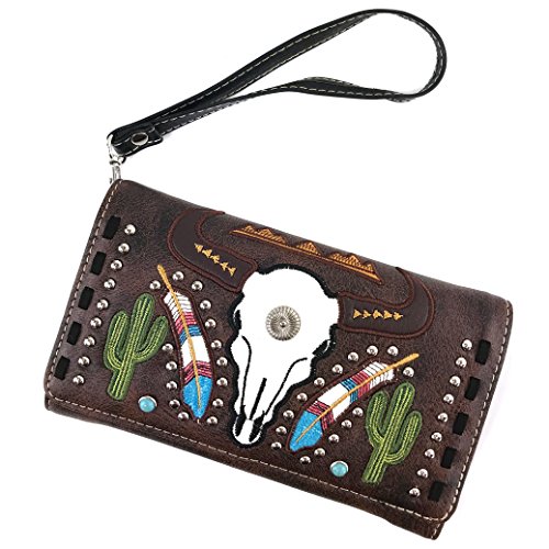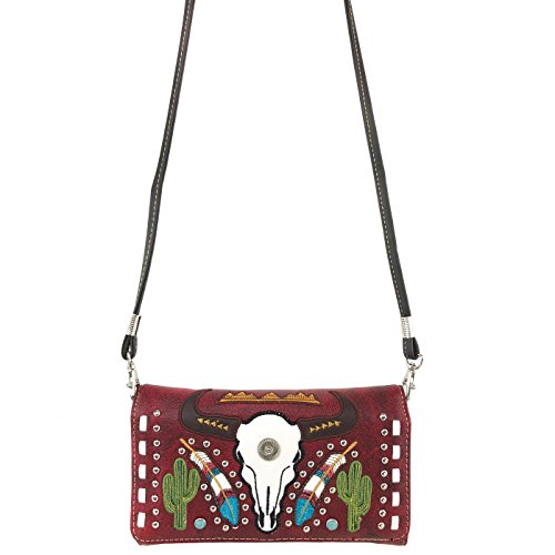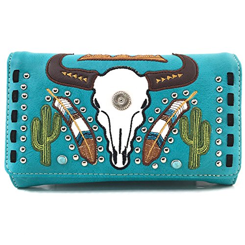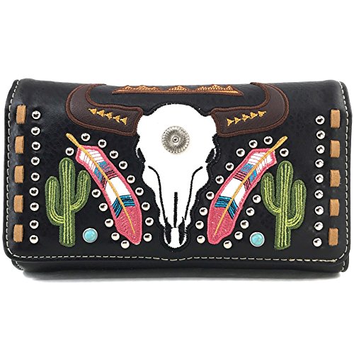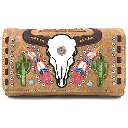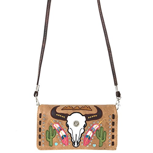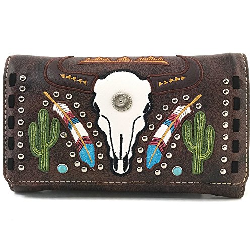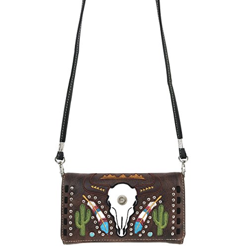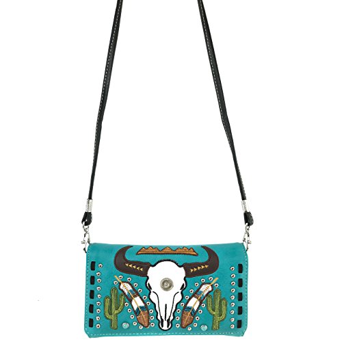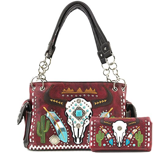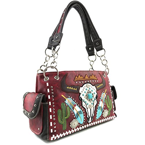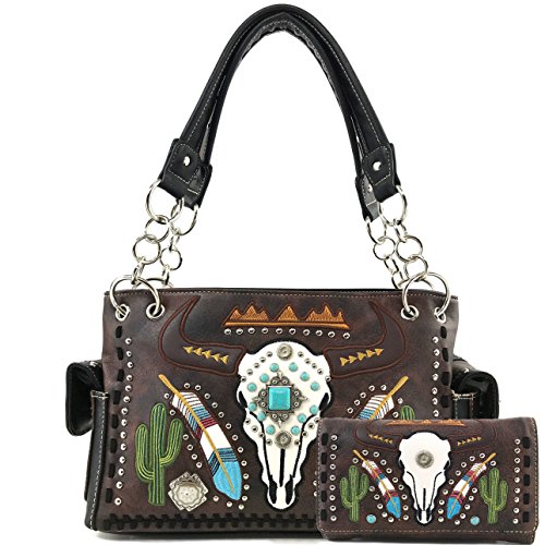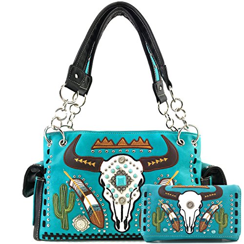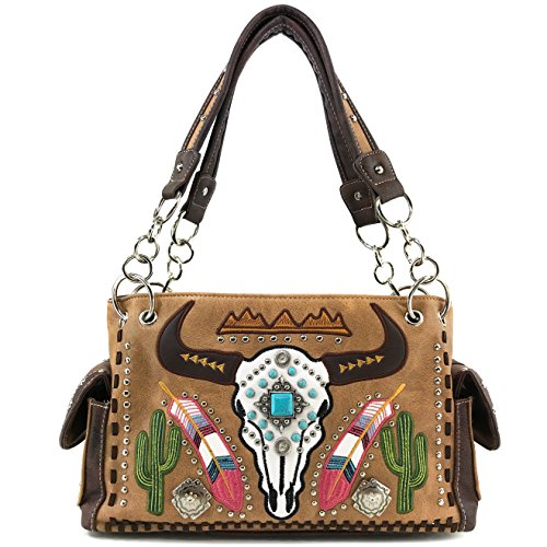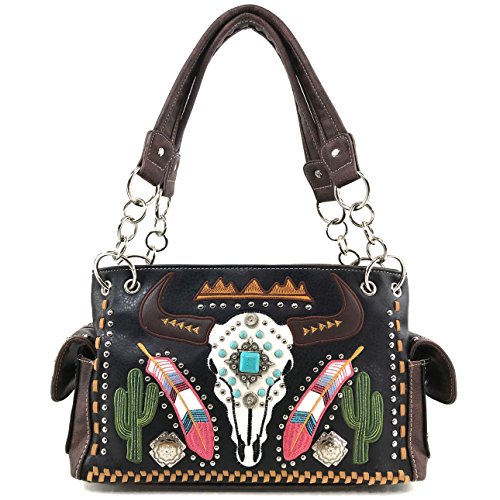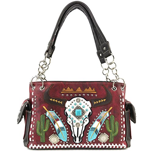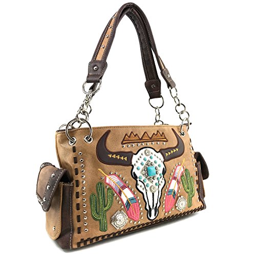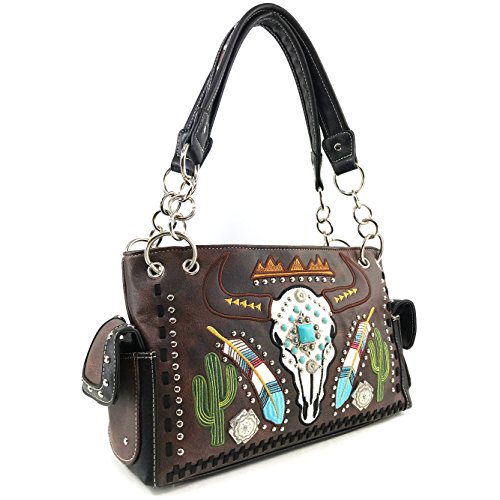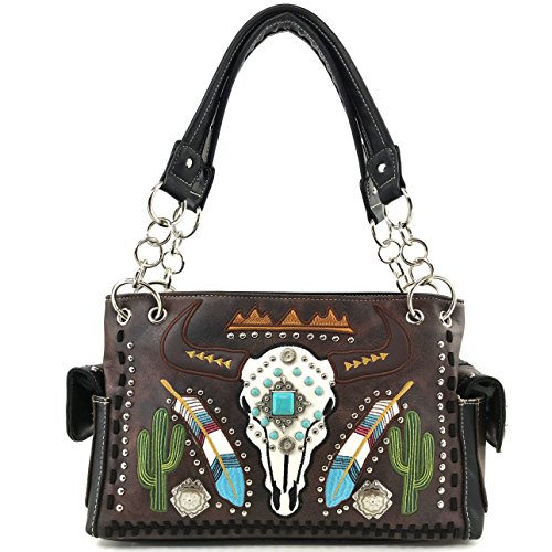 | Justin West Native Longhorn Cow Skull Cactus Feather Color Conceal Carry Shoulder Handbag Purse... |