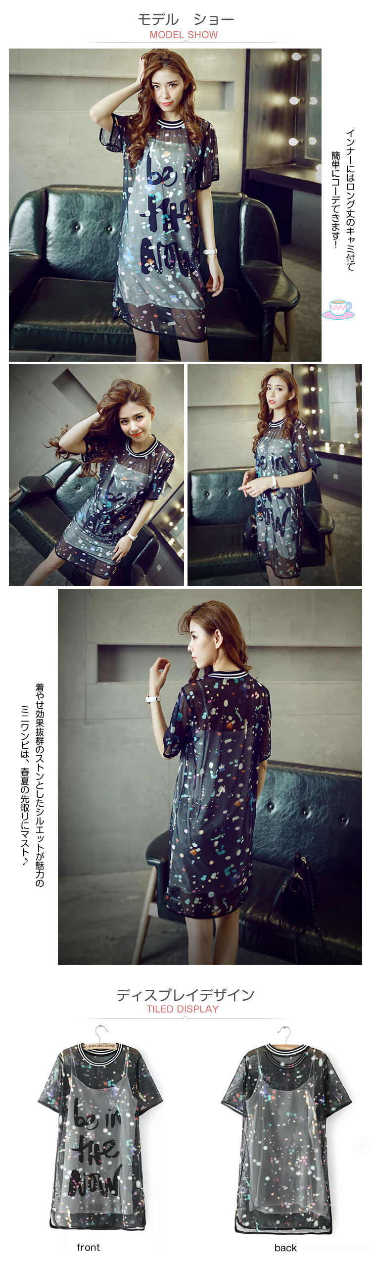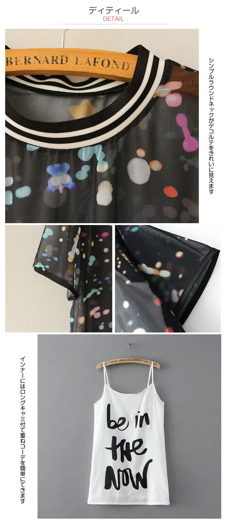| 今季トレンドのカラフルドット柄が可愛い透かしワンピの登場??インナーにはロング丈のキャミ付で簡単にコーデできます!着やせ効果抜群のストンとしたシルエットが魅力のミニワンピは、春夏の先取りにマスト? | |