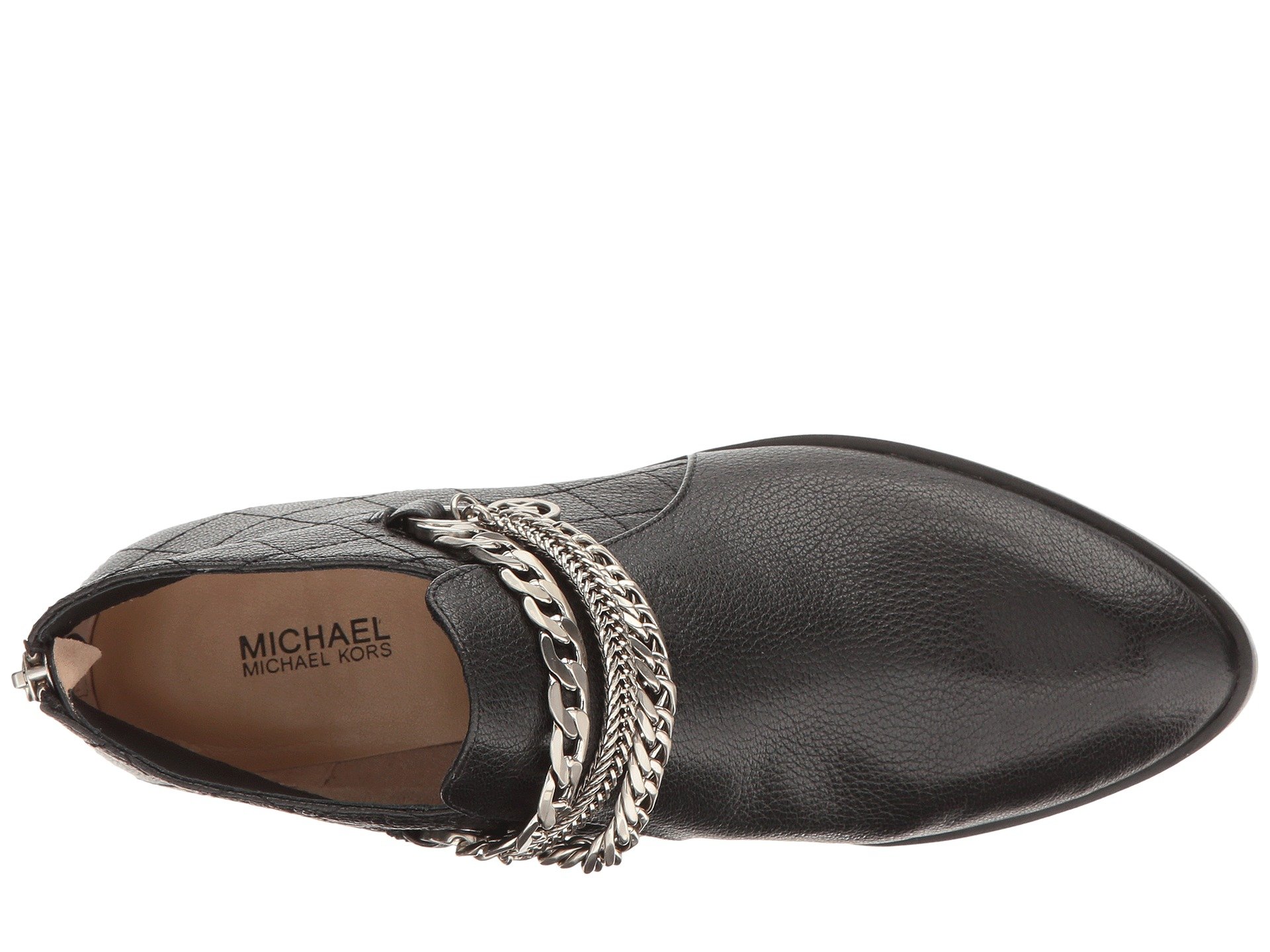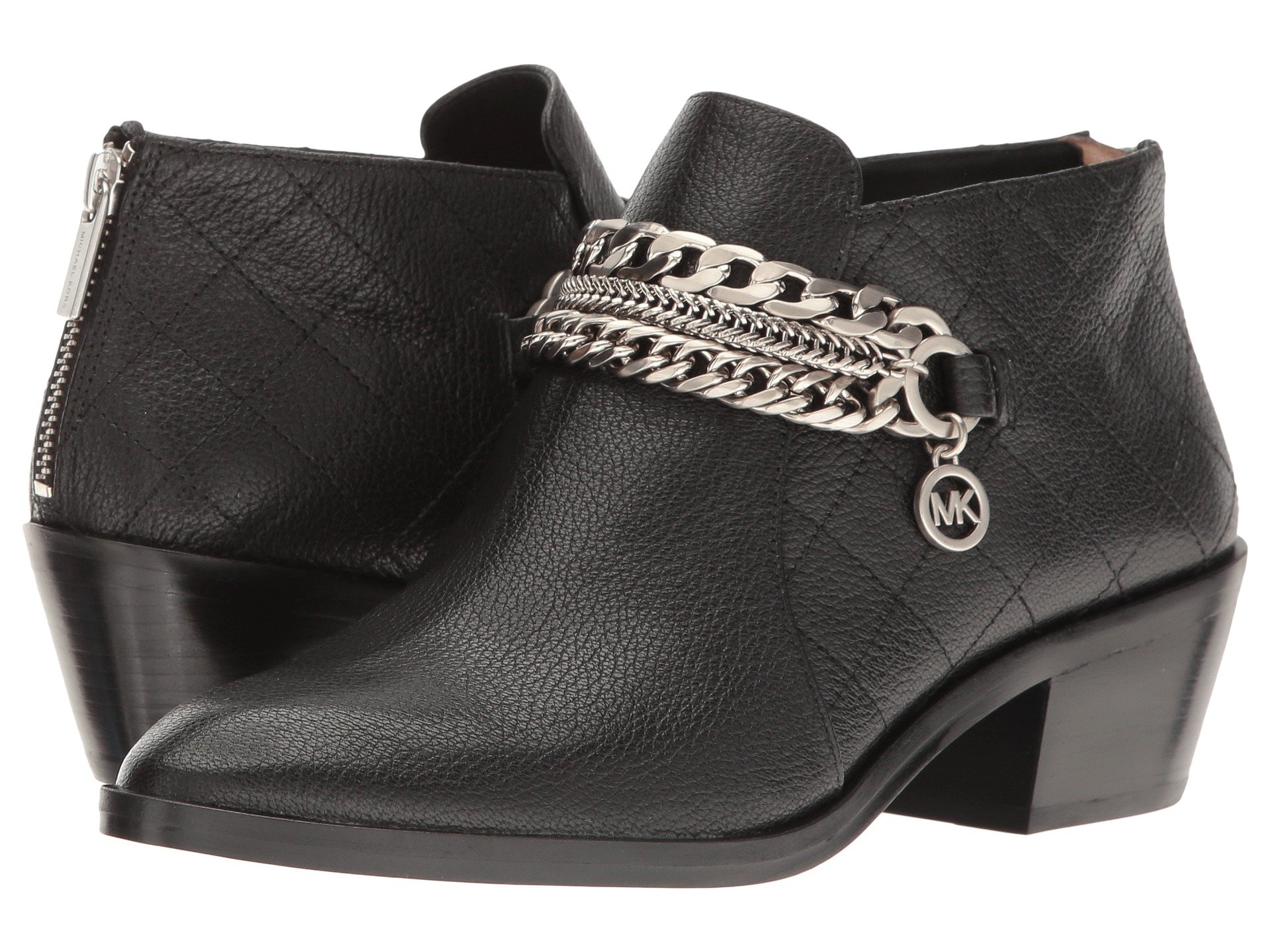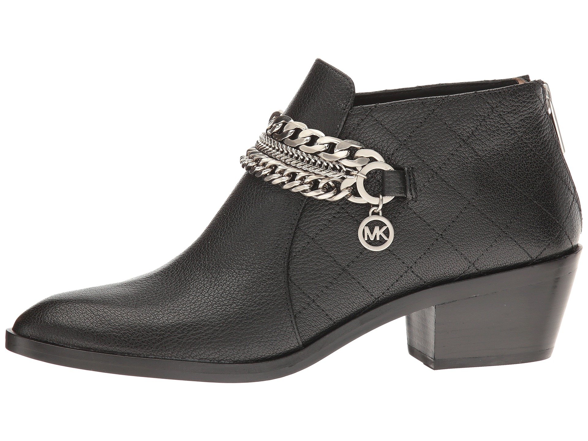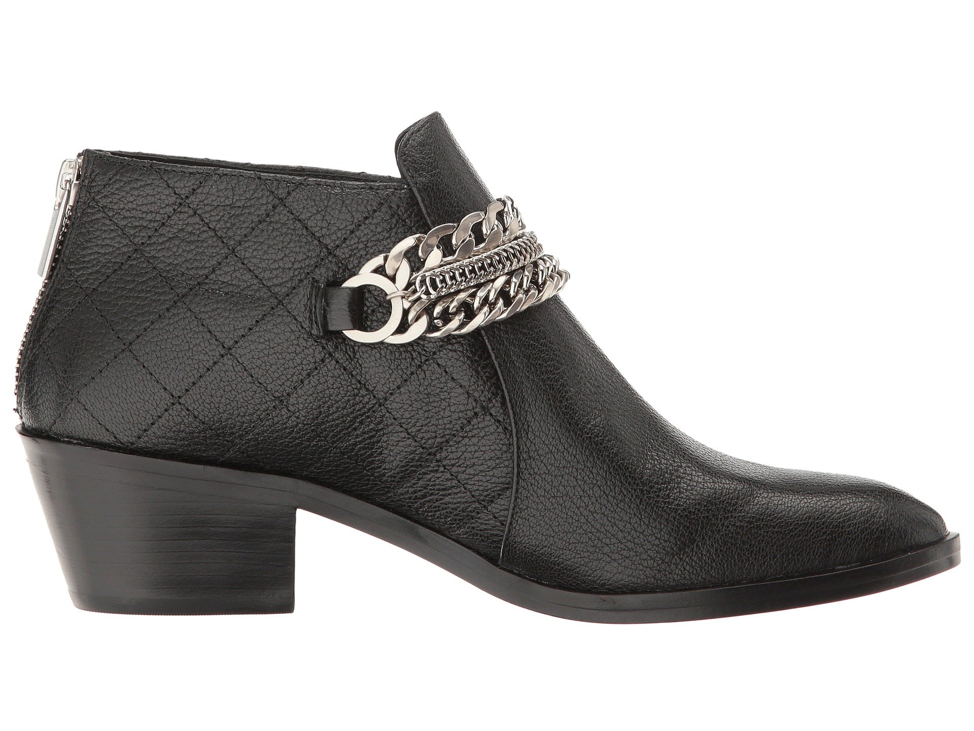 | Product Information SKU: #8875139Put some bling into your style this season!Leather upper.Back-zip closure.Decorative chain detail with quilted pattern.Synthetic lining.Lightly padded footbed.Man-made outsole.Stacked heel.Imported.Product measurements were taken using size 7.5, width M. Please note that measurements may vary by size.Weight of footwear is based on a single item, not a pair.Measurements: Heel Height: 1 3?4 in Weight: 15 oz |