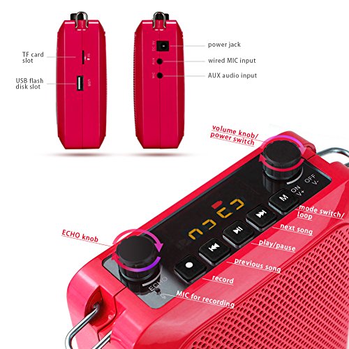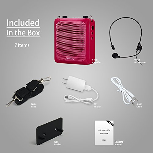-. Feature : ❀【MULTI-PURPOSE】 - Support TF card, U disk & AUX audio and independent ECHO adjustable function, you can also use built-in microphone or wired microphone for recording. This voice amplifier is not only a nice speaker for teachers but also a great device for language learner. / ❀【LIGHTWEIGHT BUT EXCELLENT SOUND】 - This wired voice amplifier is small in size and lightweight, can be easily tucked around your waist or worn around your neck with the help of the belt or waistband, very easy to carry. Supper 30 Watts output, provides a clear, natural and crystal voice, sounds coverage up to 30000sq.ft and ideal for a group of 500-800 people. / ❀【LONG WORKING TIME】 - Rechargeable voice amplifier built-in 2pcs*2000mAh big lithium battery, you can use it for 10 to 12 hours (MIC mode), 8 to 10 hours (musical mode) with a fully charged battery, amplifier charging time is 3-5 hours. / ❀【SUPER COMFORTABLE MICROPHONE HEADSET】 - The voice amplifier comes with wired headset microphone which can be positioned near your mouth with its flexible gooseneck design. Super light and comfortable, can stay on your head well, doesn't dig into your scalp. / ❀【100% REFUND GUARANTEE】 - We promise that you can purchase with confidence for this SHIDU voice amplifier, if we can't make it right and you are not satisfied for any reasons, we will gladly and promptly refund your purchase P.R.Ice or give you a new replacement. Every customers will get the best product and survice.