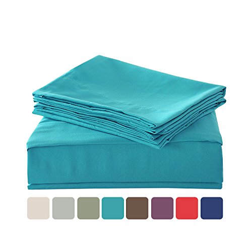 HollyHOME 1500 Soft Hypoallergenic Brushed Microfiber Bed Sheet Set, 3 Pieces Twin Size Sheets, Teal