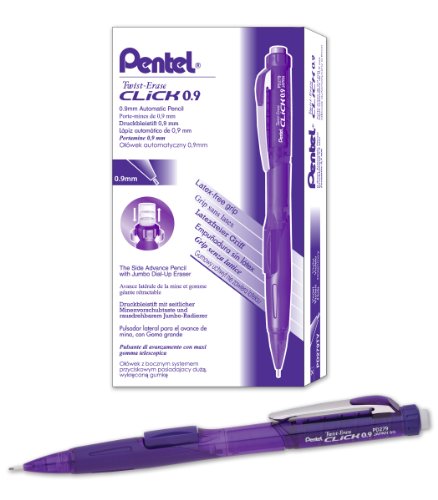 Pentel Twist-Erase CLICK Mechanical Pencil (0.9mm) Assorted Violet Barrel Colors, Color May Vary, Box of 12 (PD279TV)