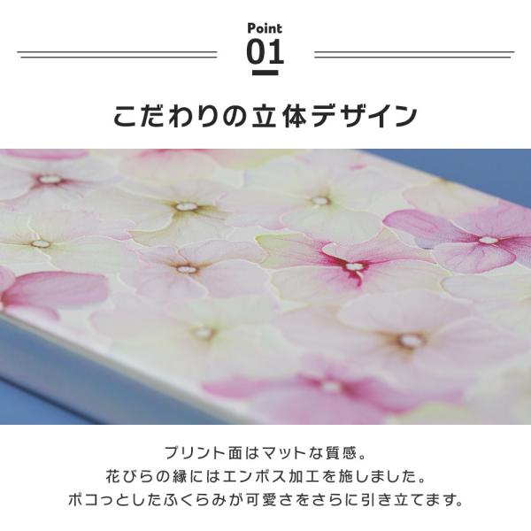ケースいっぱいに敷き詰められたお花のデザインが大人可愛いケース。