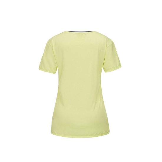 - 몸에 부드럽게 감기는 핏감으로 멋스러운 여성 반팔 티셔츠.