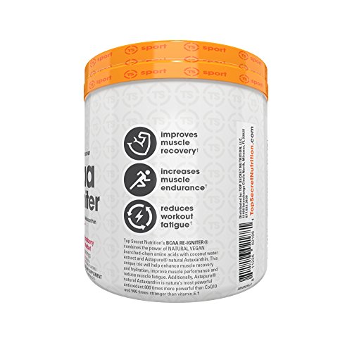 Top Secret Nutrition BCAA Re-Igniter Vegan Amino Acid Supplement with Astaxanthin and Electrolyte, Hydration Blend with Coconut water, 9.80 oz (30...