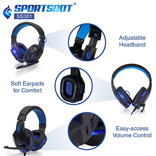 SportsBot®Gaming LED Headset - 40mm speaker driver to provide high quality,rich bass & surround sound w/ volume controller & microphone