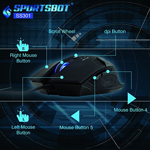 SportsBot®Gaming LED Mouse - Easy-Access DPI button for changing dpi faster and easier