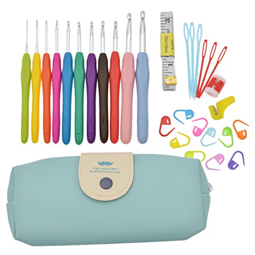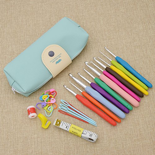 - Package included: 1×Row Counter; 1×Tape Measure(random color); 1×Ring Cutter; 6×Yarn Needles; 10×Stitch Markers(random color); 11×colorful rubber handle Hooks; 1×Storage Bag.