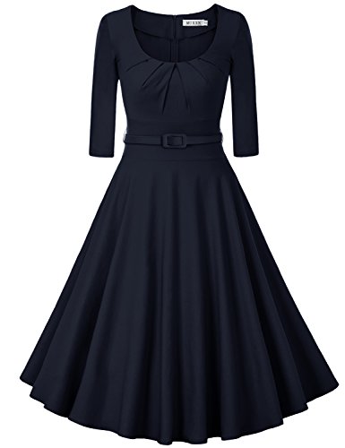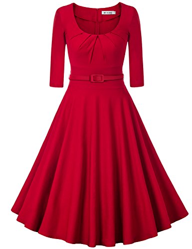 Rockabilly 1950's Vintage Style,Ruched Bust Decoration,Pleated Flare Dress