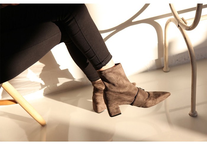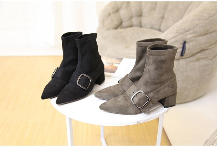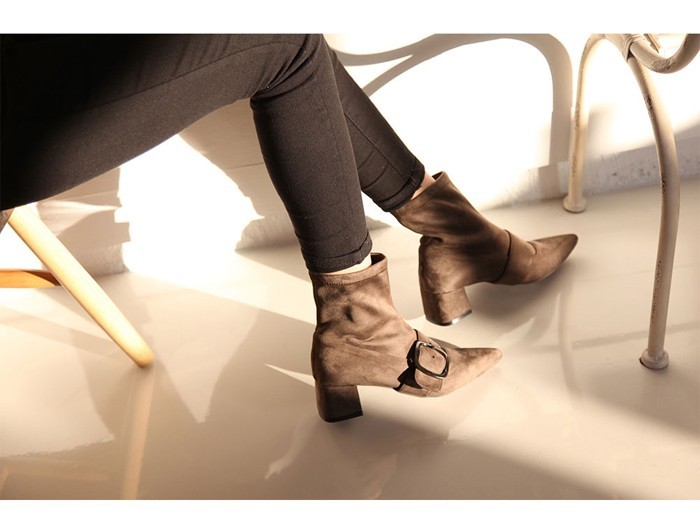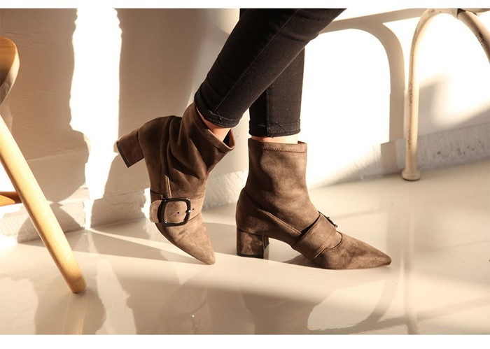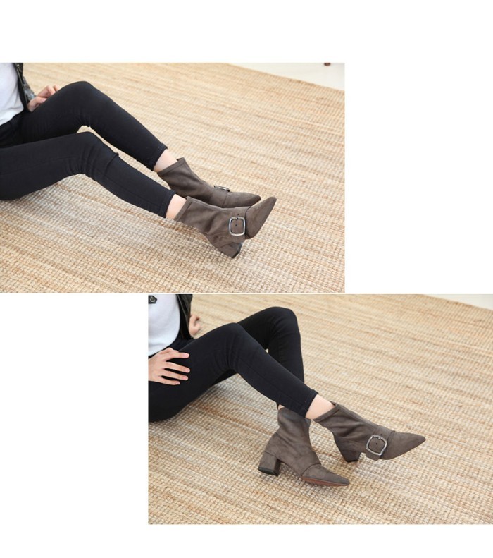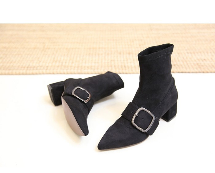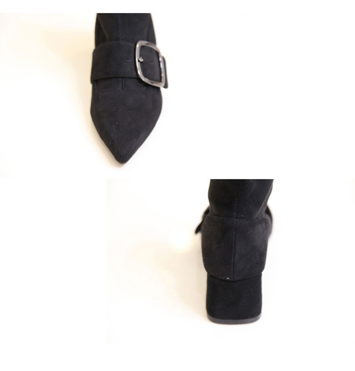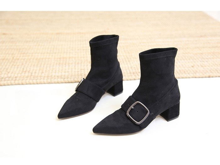 商品名:ストレッチブーツ レディース ポインテッドトゥ チャンキーヒール 太ヒール スエード調 2017 秋 冬 ファッション 靴 婦人靴