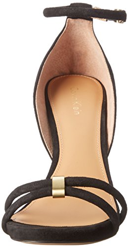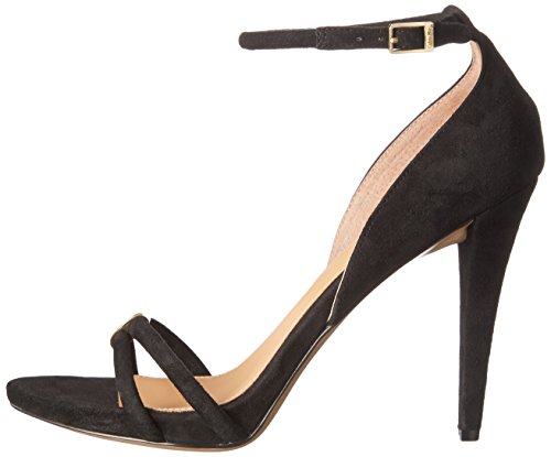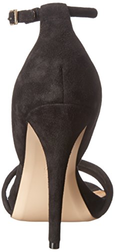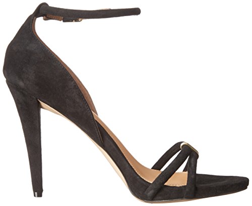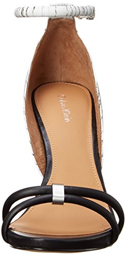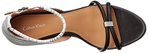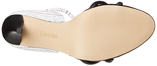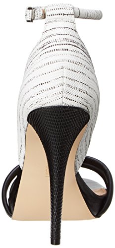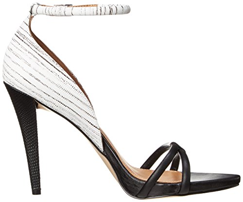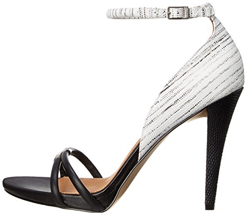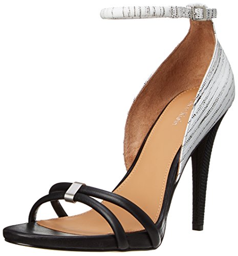 Two-tone dress sandal in d''Orsay-inspired silhouette featuring two metallic straps at toe