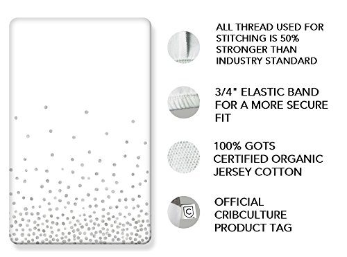 Studio : CribCulture Publisher : CribCulture Binding : Baby Product Product Description GENDER NEUTRAL CribCulture is proud to invest in quality materials and provide soft and stylish crib mattress sheets with a custom look you can't find anywhere else. We currently offer modern mint, gray and orange color and pattern collections exclusively created by our very own designer. Each crib sheet set is individually hand screened and ideal for little boys and girls. Pick up a pack for your own nursery or to give as a baby shower gift! GOTS CERTIFIED Being Global Organic Textile Standard certified means our jersey knit cotton sheets are absolutely 100% organic and don't contain any harsh chemicals or other harmful irritants. Soft, breathable and naturally hypoallergenic, the bedding is supremely gentle on your baby's sensitive skin. THICK AND DURABLE Instead of a typical - and lower quality - 130 to 140 gsm weight, we made our sheets with thicker 160 gsm material. This slightly heavier weight makes a big difference in their durability and allows them to withstand regular washings without wearing out or losing any bit of that amazing softness. STAYS IN PLACE A common issue with crib sheets - even fitted ones like ours - is how easily they can slip off a mattress. Not only is this a pain to keep fixing, it's a serious safety hazard for your small child. To solve this problem, we incorporated a 0.75 inch elastic band rather than the traditional 0.25 inch size. The extra thickness results in a snug, secure fit and a much longer lifespan. 3 SIZES Aside from standard full-size sheets, we also offer a Pack N Play/mini travel sheet set along with a changing pad cover size that's also compatible with standard and halo bassinets. - CribCulture Crib Mattress Sheets, 2-Pack - GOTS Certified Organic Jersey Knit Cotton - Hand Screened with Exclusive Designs - Gray, Mint and Orange Color Collections - Full, Pack 'N Play and Changing Pad Cover Sizes 0